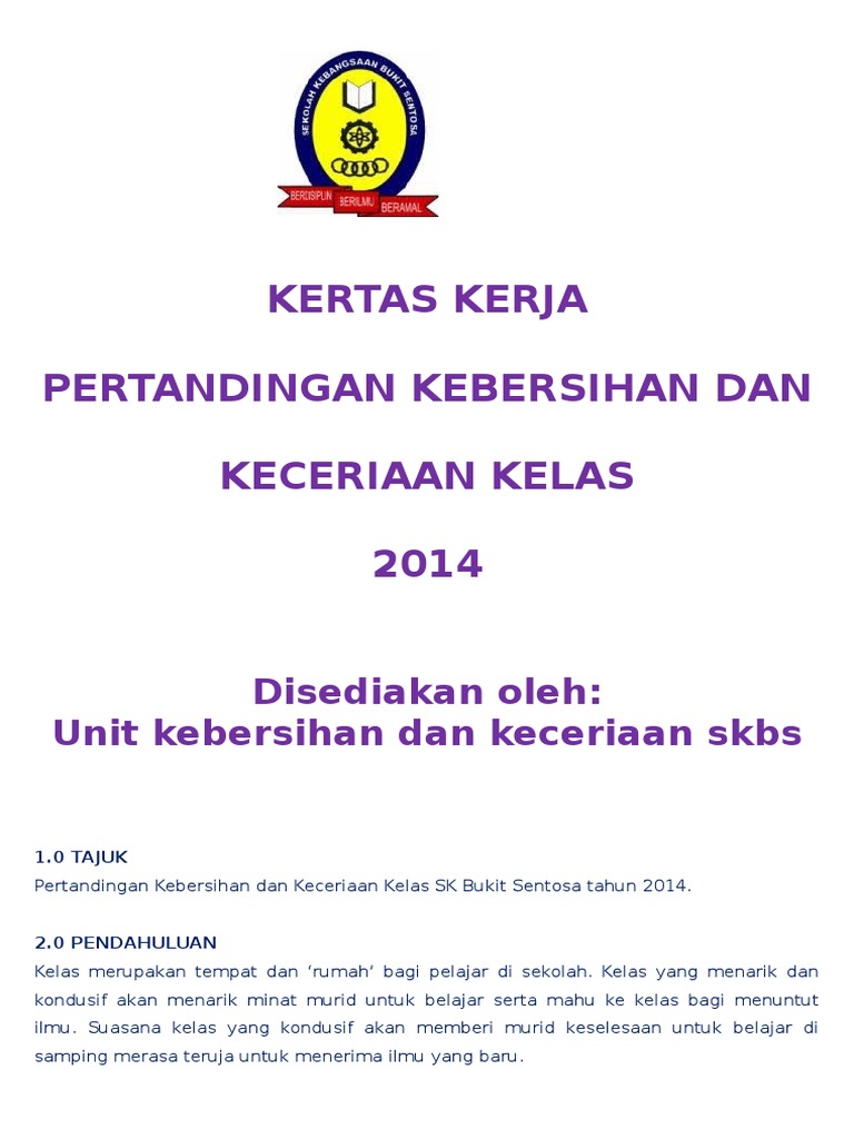 Kertas Kerja Pertandingan Kebersihan Dan Keceriaan Kelas Author. KERTAS KERJA PROGRAM PERTANDINGAN KEBERSIHAN DAN KECERIAAN KELAS SK ORANG KAYA MOHAMMAD 2014 10 PENDAHULUAN Murid-murid menghabiskan kebanyakan masa. MAJLIS PEPERIKSAAN MALAYSIA BAHASA MELAYU.